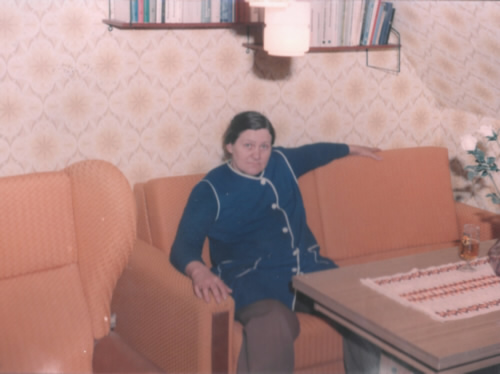 Mutter sitzt in meinem Zimmer zu DDR Zeit